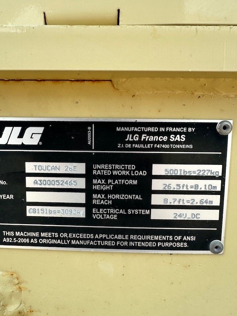2013 JLG Toucan 26E personal lift. The batteries went bad and the unit has been sitting for a couple of years.
